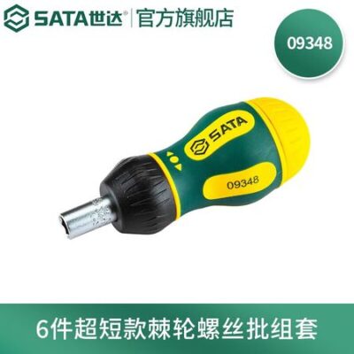 Набор отверток Shida из 24 предметов с Т-образной рукояткой и храповым механизмом, бита 09348 (набор из 6 предметов с короткими трещотками) SATA
