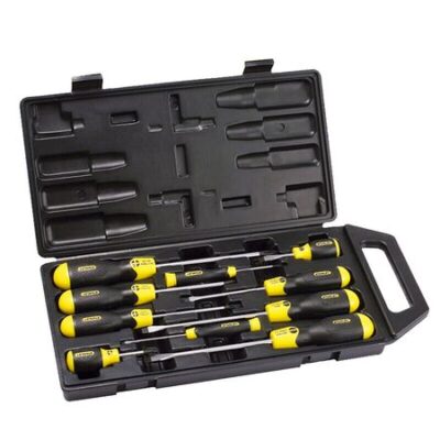 Набор отверток Stanley набор бытовых крестообразных отверток, двухцветная отвертка с пластиковой ручкой, хромованадиевая сталь, набор из 10 предметов 65-005C-23