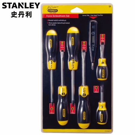 Набор отверток Stanley с резиновой ручкой, набор крестообразных отверток, набор из 6 предметов с резиновой ручкой и тестовой ручкой 92-002-23