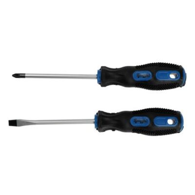 Набор отверток ТУНДРА, сатин, магнит, двухкомпонентные рукоятки, PH2/SL6×100 мм, 2 шт.. Набор отверток ТУНДРА имеет стержни из высококачественного металла с намагниченным наконечником. Эргономичная двухкомпонентная прорезиненная рукоятка делает работу с инструментом легкой и продолжительной.