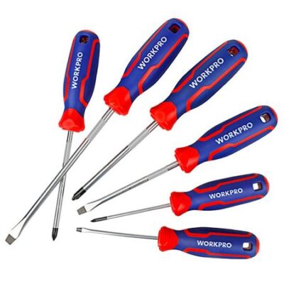 Главная » Строительство и ремонт набор отверток WORKPRO 6шт Просмотров 14 Предметов в наборе: 6 Состав: РН0х75мм, РН1х100мм, РН2х100мм, 3х75mm, 5.5х100mm, 6.5х150mm Хромированное покрытие насадок: да WORKPRO