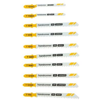 Главная » Строительство и ремонт набор пилок для лобзика по дереву и пластику HANSKONNER 10шт Просмотров 7 Назначение: по дереву и пластику Количество в упаковке: 10 шт В комплекте: T101B 2шт, T144D 2шт, T101BR 2шт, T119BO 1шт, T111C 1шт, T101D 1шт, T101AO 1шт HANSKONNER