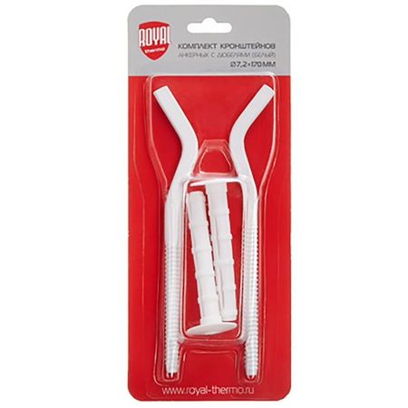 Royal Thermo (Роял Термо) Комплект 7,2х170мм белые это набор крепежей для настенной установки секционных радиаторов Royal Thermo. В комплект входят два анкерных кронштейна и два дюбеля. Все элементы изготовлены из высокопрочного металла, что обуславливает высокую надежность крепления отопительного прибора.