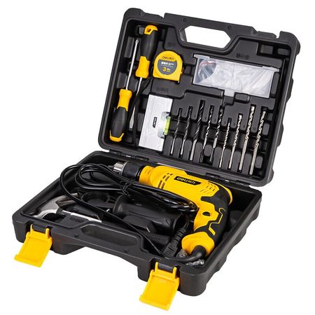 Набор ручных электрических дрелей Deli, многофункциональный ящик для инструментов, комбинированный набор, ударная дрель, 550 Вт, набор из 16 предметов, DL1016