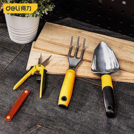 Набор садовых инструментов Deli из трех частей, набор для посадки овощей, посадка в горшках, рыхлая почва, прополка, набор садовых инструментов, широкая лопата, маленькие грабли, ножницы для цветочных ветвей DL580803B