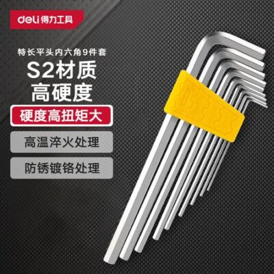 Набор шестигранников Deli, шестигранная отвертка, головка высокой твердости, удлиненный шестигранный ключ с плоской головкой, набор из 9 предметов