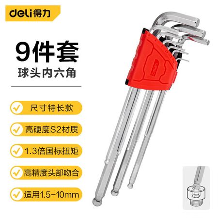 Набор шестигранных ключей с удлиненной шаровой головкой Deli, набор из 9 предметов из легированной стали, L-образный шестигранник DL2270