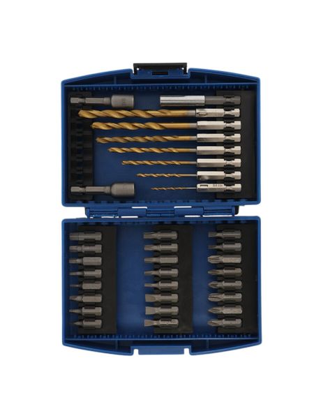 Набор сверл и бит ТУНДРА, HSS-Tin, шестигранный хвостовик, 1.5 — 6.5 мм, 34 предмета. <em> Все, что нужно для точной и быстрой работы — в одном наборе</em> — <strong> Сверла и биты с шестигранным хвостовиком 1.5–6.5 мм</strong> — готовое решение для домашних ремонтов, сборки мебели, электромонтажа и профессионального использования. Все необходимое под рукой — без лишних покупок и поиска нужного размера. <ul> <li> <strong> Расширенный диапазон:</strong> Сверла от 1,5 до 6,5 мм охватывают большинство типовых задач. Подходит для дерева, металла, пластика и других материалов.</li> <li> <strong> Покрытие HSS-TiN:</strong> Повышает износостойкость, сохраняет остроту кромки даже при интенсивном использовании. Увеличивает срок службы каждого сверла.</li> <li> <strong> Шестигранный хвостовик:</strong> Обеспечивает плотное зажатие в патроне дрели или шуруповерте. Исключает прокручивание, повышает передачу крутящего момента.</li> <li> <strong> 34 предмета в комплекте:</strong> В одном кейсе — сверла разных диаметров и набор бит для всех популярных видов крепежа. Не нужно докупать дополнительные оснастки — все уже собрано за вас.</li> </ul> <strong> Для чего подходит:</strong> Используется при ремонте техники, сборке корпусной мебели, монтаже систем хранения, установке дверей, окон, фурнитуры. Также незаменим в автосервисах, мастерских и на строительных площадках. <strong> Как работает:</strong> Сверло быстро и точно формирует отверстие нужного диаметра. Бита аккуратно закручивает крепеж без срывов головок — экономя время и снижая риск травмы. <strong> Почему выбирают этот набор:</strong> Это не просто набор инструментов — это продуманная система для ежедневного использования. Все упорядочено, ничего лишнего — только проверенные размеры и надежная оснастка. <strong> Выбирая набор сверл и бит 1.5–6.5 мм</strong> , вы получаете универсальную базу для любых работ. Это не просто инструмент — это уверенность в том, что каждое соединение будет точным, а работа закончится без задержек и недоделок.