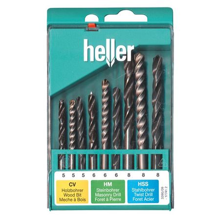 набор сверл по дереву, металлу, бетону HELLER 9 предметов