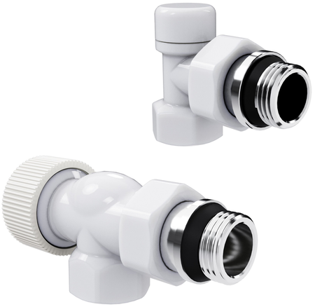 Royal Thermo (Роял Термо) Design 1/2″М30х1,5 (Белый), осевой это термостатический набор для бокового подключения радиаторов различного типа (секционных, панельных, трубчатых, биметаллических) к отопительной системе. И запорный, и термостатический клапаны здесь выполнены из прочной латуни.