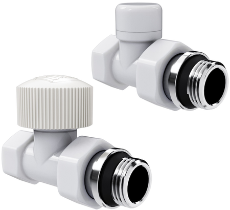 Термостатический набор Royal Thermo (Роял Термо) Design 1/2″М30х1,5 (Белый), прямой является важным аксессуаром для подключения биметаллических, трубчатых, панельных или секционных радиаторов к трубам отопительной системы. Клапаны изготовлены из латуни и покрыты слоем белой порошковой краски.