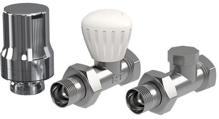 Royal Thermo (Роял Термо) Набор термостатический прямой DE LUXE (хром) 1/2 представляет собой комплект из вентиля на обратную подводку, термостатического вентиля и и термоголовки. Все изделия выполнены в цвете хром.