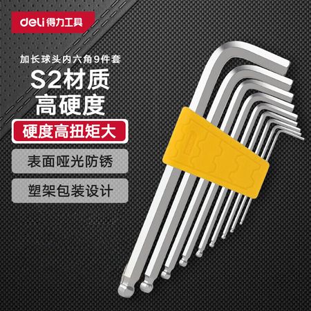 Набор внутренних шестигранников Deli, шестигранная головка с головкой высокой твердости, удлиненная сферическая головка, набор из 9 предметов