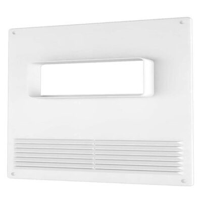 Для пластиковых воздуховодов Размер площадки: 250 х 180 мм Размер фланца: 55 х 110 мм Ориентация фланца: горизонтальная Материал: пластик Цвет: белый Дополнительно: с решеткой