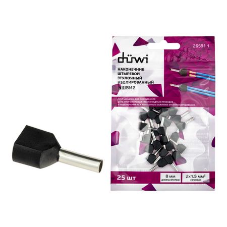 Главная » Строительство и ремонт наконечник-гильза двойная с изолированным фланцем DUWI НШВИ2 1,5 кв. мм под опрессовку черные 25шт Просмотров 10 Макс.сечение жилы: 1,5кв.мм Материал: медь Количество в упаковке: 25 Цвет: черный DUWI