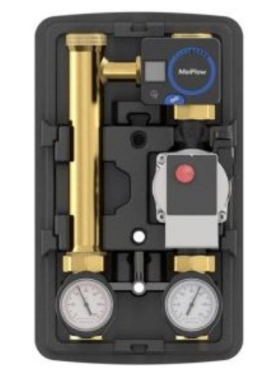 Meibes (Майбес) MeiFlow TOP S RLB DN25 с электронным термостатом и насосом Wilo PARA SC 25-7.0 это готовый блок с полным монтажным комплектом, теплоизоляцией и аксессуарами. Конструкция насосной группы способна компактно, быстро, эстетично выполнить обвязку котлов мощностью до 85 кВт. Сервопривод с электронным термостатом, установлен на смесителе и управляет всей группой.