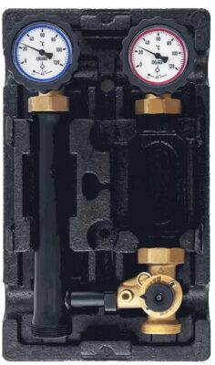 Насосная группа со смесительным клапаном, предназначена для обеспечения гидравлического и температурного режимов в системе отопления с переменной температурой теплоносителя