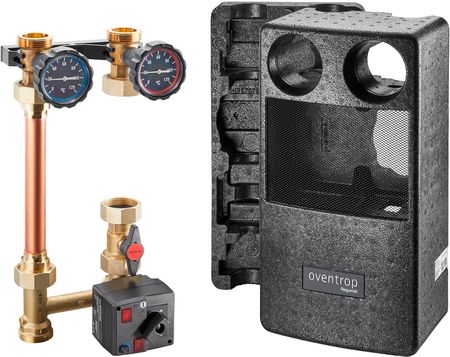 Насосная группа от бренда Oventrop (Оуэнтроп) Regumat MF-180 DN25 для отопительных систем радиаторного типа и теплого пола. Данный комплект позволяет организовать правильное распределение теплоносителя по системам при дальнейшем подключении насоса. Ограничение температуры воды в подающем контуре — залог правильной и долгой работы.
