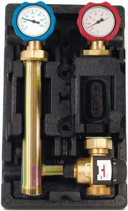 Rommer (Роммер) RDG-1002-002501 представляет собой насосную группу с правым расположением патрубка подачи. Она оснащена 3х-ходовым термостатическим смесительным клапаном. Обеспечивает принудительную циркуляцию теплоносителя, а также поддерживает нужный температурный режим жидкости в отопительном контуре.