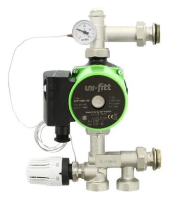 Насосно-смесительный узел Uni-Fitt (Юни-Фит) SOLOMIX MINI с наружной резьбой 1, с насосом Uni-Fitt ECP 15/60 130 это незаменимое оборудование при необходимости совмещения теплых полов и центрального отопления. Устройство обеспечивает стабильную и безопасную работу низкотемпературного отопительного контура.