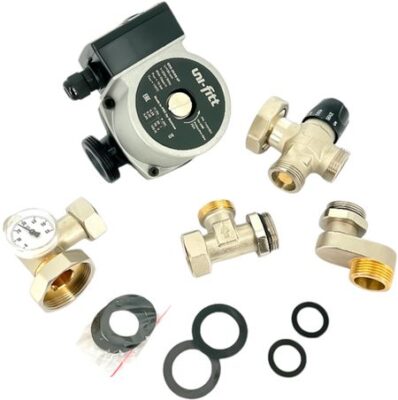 Насосно-смесительный узел Uni-Fitt (Юни-Фит) SOLOMIX X с наружной резьбой 1, с насосом Uni-Fitt GTO 25-6S 130 выполнен из никелированной латуни для максимальной долговечности. В комплект поставки входит насос, который позволяет организовать циркуляцию теплоносителя в отопительных системах типа «теплого» пола. Также на подающих и обратных линиях предусмотрены термометры.