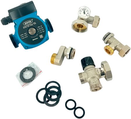 Группа быстрого монтажа Uni-Fitt (Юни-Фит) SOLOMIX X с наружной резьбой 1, ZOTA RING 25/60 поставляется с насосом и применяется в низкотемпературных системах отопления. Установка изделия производится на коллектурную группу контура и соединяется с контуром высокотемпературной отопительной системы.