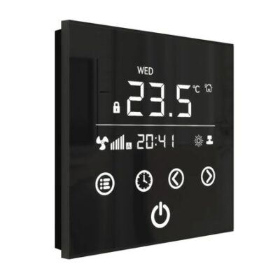 Настенный регулятор имеет великолепный дизайн с единой лицевой стороной полностью выполненной из закаленного стекла.