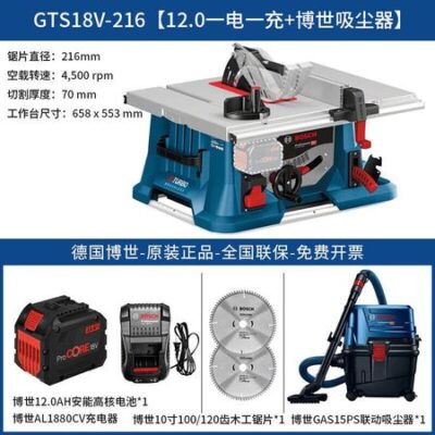 Настольная пила для деревообработки Bosch GTS18V-216 + аккумулятор 12.0Ah, зарядное устройство, две насадки