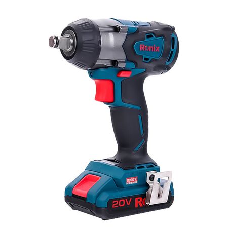 Немецкий литиевый ударный гайковерт Ronix 8907K, напряжение 20 В, емкость аккумулятора 4,0 Ач, синий и черный после зарядки