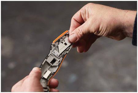 Выдвижной нож безопасно и просто использовать. Боковой двойной механизм блокировки предотвращает случайное выдвижение лезвия. Встроенное в рукоятку хранилище помогает безопасно и быстро заменить лезвие на новое.Особенности: Нож подходит для работы с различными материалами: картон, изоляция, дерево, сайдинг, ковровые покрытия, гипсокартон, пластик и др. Боковое расположение механизма блокировки предотвращает случайное выдвижение лезвия Удобный упор для большого пальца, при нажатии на который увеличивается усилие при срезе Зажимая глубокую канавку большим и указательным пальцами с двух сторон, увеличивается маневренность руки для точных срезов Специальное покрытие CarbonMax разработано и протестировано для того, чтобы лезвие оставалось острым даже при интенсивной работе Полностью металлическая конструкция ножа выдерживает интенсивное использование. Усиленный металлический наконечник устойчив к ударам Эргономичная рукоятка со структурным покрытием SoftGrip помогает руке сохранить уверенное положение при срезе твердых материалов Внутренние компоненты и лезвия надежно закреплены, не выпадут при смене лезвий и легко чистятся Отверстие для крепления шнурка В комплекте идет одно универсальное лезвие CarbonMax Вмещает пять запасных лезвий арт. 1027229