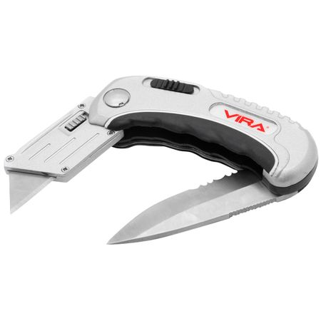 Главная » Строительство и ремонт нож VIRA RAGE 2в1 складной универсальный 19мм Просмотров 7 Тип: складной, универсальный 2 в 1 Ширина лезвия: 19мм VIRA