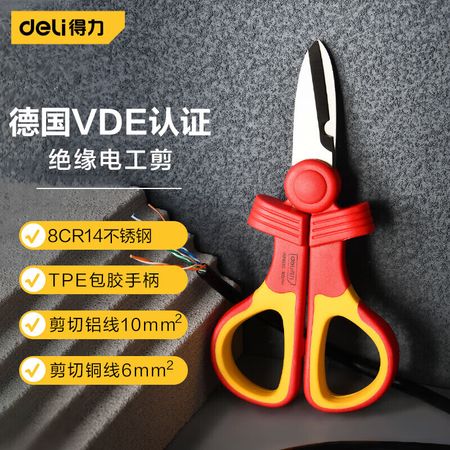 Ножницы электрика Deli изолированные многофункциональные высоковольтные ножницы для электриков 160 мм DQ90301