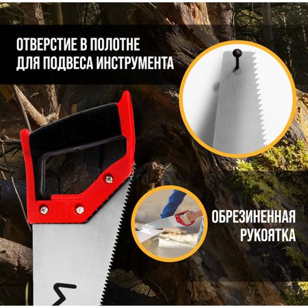 Ножовка по дереву ЛОМ, обрезиненная рукоятка, 7-8 TPI, 350 мм. Для мастерских работ по дереву представляем — пила высокой точности с эргономичной рукояткой. Ручная пила с резиновой ручкой, многопрофильный инструмент для точной и легкой распилки. Пила длиной 350 мм оснащена двухкомпонентной рукояткой, что обеспечивает комфорт и надежность в использовании. С числом зубьев на дюйм (TPI) между 7 и 8, она идеальна для тех, кто стремится к высокоточному распилу. <b> Преимущества</b> <ul> <li> Идеальный выбор для резьбы и работ по дереву.</li> <li> Обеспечивает точность и контроль при каждом движении.</li> <li> Удобная эргономичная рукоять для долговременной работы без усталости.</li> <li> Создана с опытом и вниманием к деталям для любителей и профессионалов.</li> </ul> <b> Применение на практике</b> Эта пила поможет легко и быстро создавать искусные изделия из дерева, делая каждодневную работу более приятной и эффективной. Благодаря своему дизайну, инструмент стал незаменимым для каждого, кто ценит качество и комфорт — будь то новичок или опытный плотник.