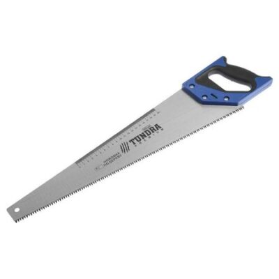 Ножовка по дереву ТУНДРА предназначена для пиления заготовок из древесины. Полотно выполнено из высококачественной стали марки 65.Двухкомпонентная рукоятка за счет своей профилированности удобно лежит в руке при работе. Зубья разведены, что обеспечивает гладкость реза.Полотно инструмента имеет каленый зуб с трехсторонней заточкой, что обеспечивает более лучший рез, по сравнению с двухсторонней.