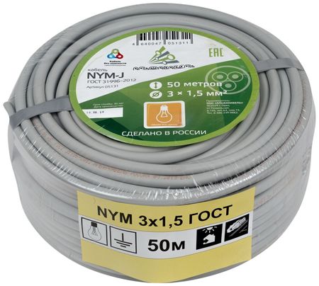 Главная » Строительство и ремонт NYM/NUM Без бренда Кабель силовой NYM/NUM 3×1,5 кв. мм 50 м Просмотров 9 Широкий ассортимент по выгодным ценам. Регулярные акции. Программа лояльности Без бренда