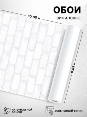 Обои виниловые на бумажной основе «Саратовские обои»Представляют собой качественное настенное покрытие, выполненное из винила на бумажной основе. Модель В610-00 украшена реалистичным изображением белого кирпича, которое придаёт помещению особую атмосферу уюта и современности.Преимущества:Реалистичный рисунок: Имитация белого кирпича добавляет пространству глубину и текстурность, создавая иллюзию настоящей кирпичной кладки.Устойчивость к внешним факторам: Виниловый слой защищает обои от влаги, света и механических воздействий, обеспечивая долгий срок службы.Удобство монтажа: Бумажная основа облегчает процесс наклеивания обоев, позволяя избежать складок и пузырей.Широкий спектр применения: Подходит для отделки стен в жилых комнатах, кухнях, прихожих и других помещениях.Рекомендации по использованию: Для достижения наилучшего результата рекомендуется использовать специальный клей для виниловых обоев и тщательно подготовить стены перед поклейкой.