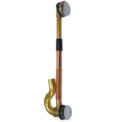 Открытие и закрытие выпускного клапана происходит нажатием на клапан. Материал: Корпус из латуни, гофрированная труба из красной меди, выпуск и нижний клапан — хромированная латунь. Размер: между центрами 60 см, высота регулируется.