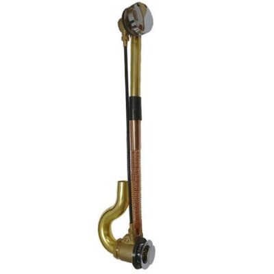 Открытие и закрытие выпускного клапана происходит путём поворота крышки на переливе. Материал: Корпус из латуни, гофрированная труба из красной меди, выпуск и нижний клапан — хромированная латунь. Размер: между центрами 60 см, высота регулируется.