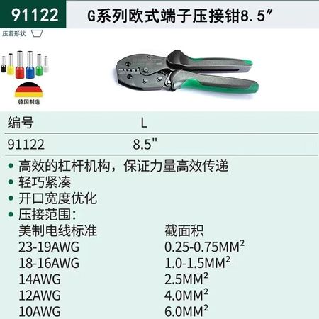 Обжимные клещи для европейских клемм серии SATA G Саморегулирующиеся обжимные клещи для изолированных клемм 8,5 дюйма 91122