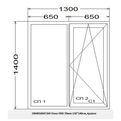 Главная » Строительство и ремонт окно пвх 2створчатое SСHTERN 70 140х130см правое поворотно-откидное Просмотров 6 2-створчатое левое глухое, правое поворотно-откидное Размер: 140х130 см, с/п 4-12-4-12-4 мм Профиль: SHTERN 70 мм Цвет: белый SСHTERN