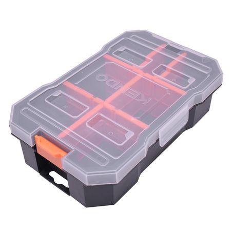Главная » Строительство и ремонт органайзер KENDO 230х141х67мм Просмотров 9 Размер: 230х141х67 мм Количество отделений: 7 Материал: полипропилен Цвет: черный, оранжевый KENDO