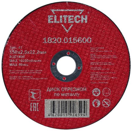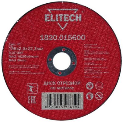 Главная » Строительство и ремонт Отрезные диски ELITECH Отрезной диск по металлу ELITECH 1820.015600 150х22,2×2,5 мм Просмотров 8 Широкий ассортимент по выгодным ценам. Регулярные акции. Программа лояльности ELITECH
