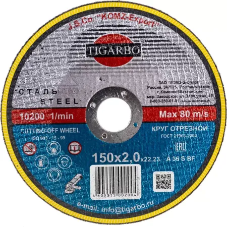 Главная » Строительство и ремонт Отрезные диски TIGARBO Отрезной круг TIGARBO 150х22,23х2 мм Просмотров 9 Широкий ассортимент по выгодным ценам. Регулярные акции. Программа лояльности TIGARBO