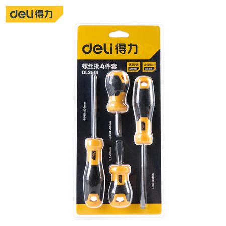 Отвертка Deli из хромованадиевой стали с резиновой ручкой, крестообразная магнитная отвертка, набор из 4 предметов DL3501