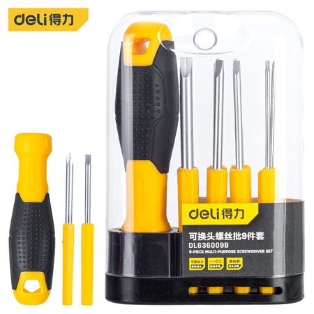 Отвертка Deli со сменным хвостовиком из хромованадиевой стали, короткая, набор из 9 предметов DL636009B