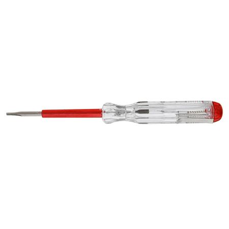 Отвертка индикаторная ЛОМ, пластиковая рукоятка, 135 мм. Отвертка индикаторная марки LOM предназначена для электромонтажных работ. Прибор служит для безопасного определения наличия или отсутствия напряжения. Отвертка оснащена светодиодным индикатором, который загорается при обнаружение электрического тока.