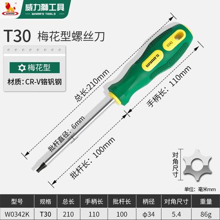 Отвертка Power Lion (Wynns), головка Torx, шестигранная отвертка, отвертка Torx, T30 со средним отверстием, тип Torx W0342K