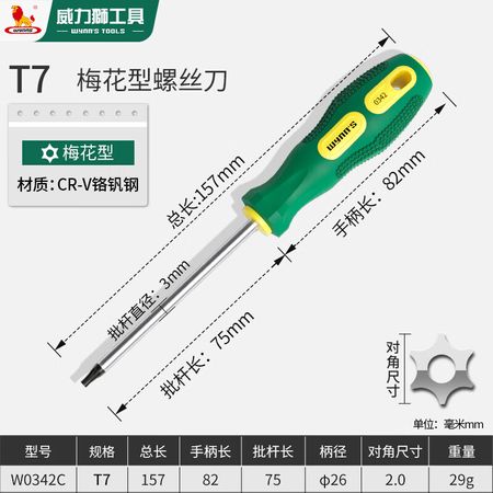Отвертка Power Lion (Wynns) Шестигранная отвертка с головкой Torx Отвертка Torx T7 со средним отверстием Torx типа W0342C