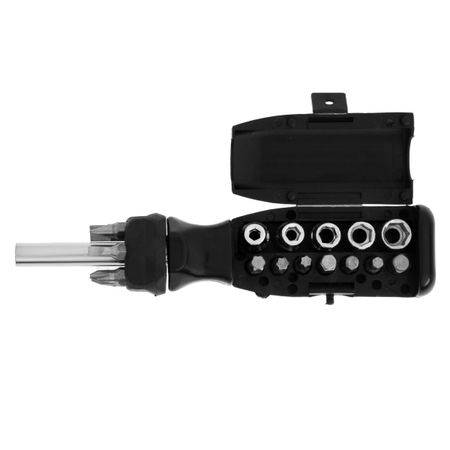 Отвертка с набором бит и головок ТУНДРА, 19 предметов. Набор отверток TUNDRA basic предназначен для монтажа и демонтажа резьбовых соединений во время проведения ремонтных работ. Инструмент изготовлен из прочного и высококачественного металла, оснащен эргономичной пластиковой рукояткой, которая также служит кейсом для хранения бит и головок. Состав <ul> <li> Биты — 13 шт. </li> <li> Торцевые головки — 5 шт. </li> <li> Вороток — 1 шт. </li> </ul> <ul> </ul>