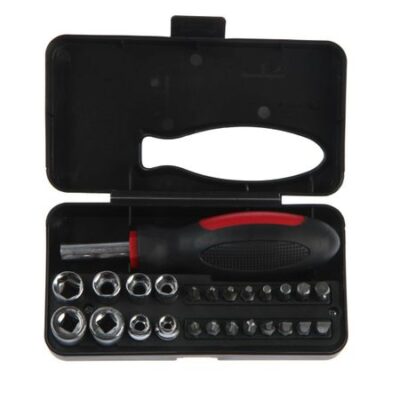 Отвертка с набором бит и торцевых головок тундра, пластиковый кейс, 25 предметов
